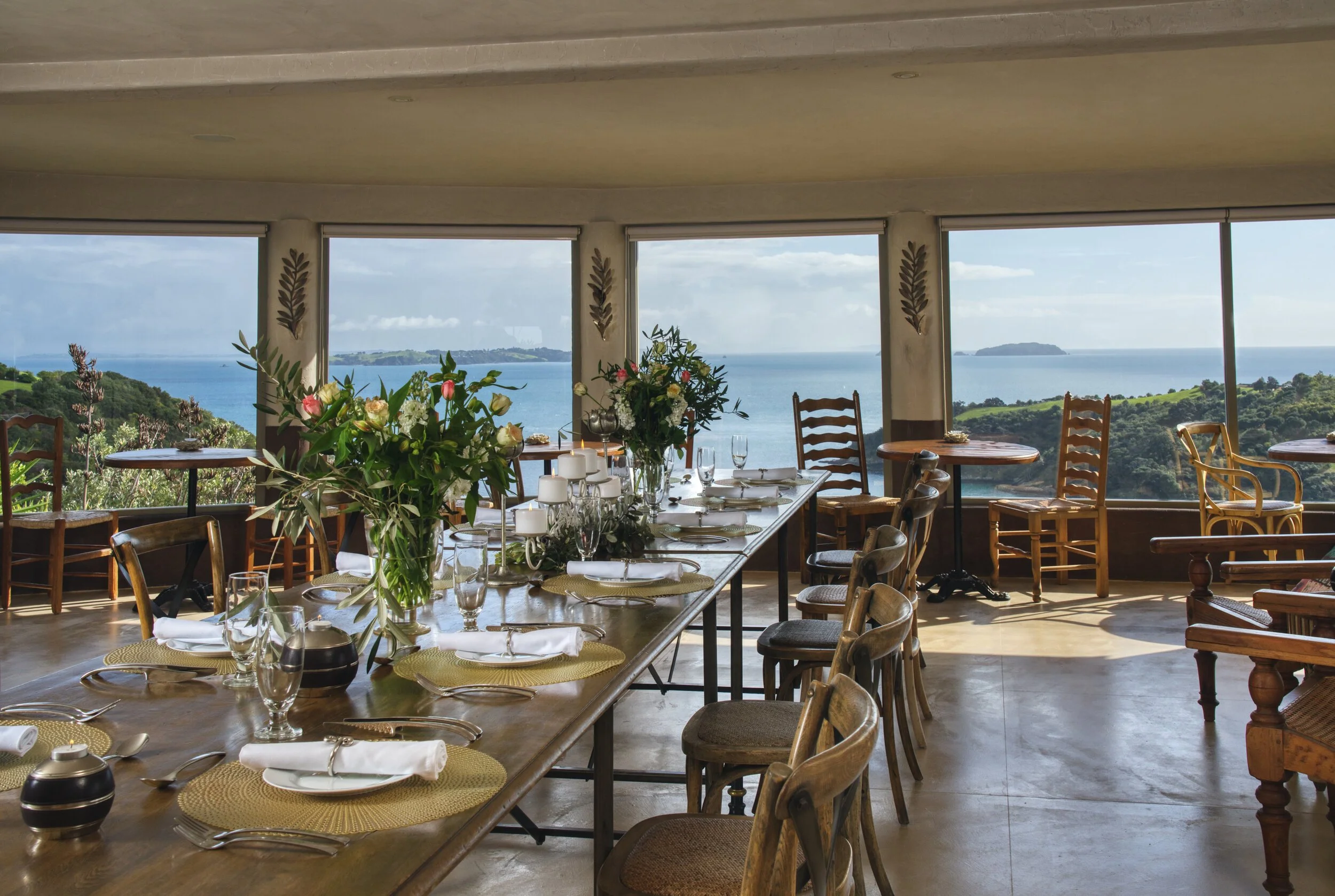 Experience fine dining with breathtaking views of the Hauraki Gulf at Delamore Lodge Restaurant. The exclusive menu features dishes crafted from locally sourced and seasonal ingredients, creating a luxurious culinary experience in an unparalleled setting.